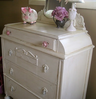 The girls have my old dresser set in their bedroom now and I wanted to paint it for a while, but never quite got around to it. Finally, I did it.